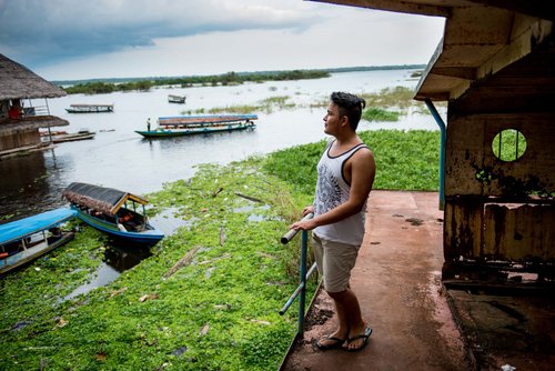 Ferdinand and his prized scooter he purchased with revenue generated from cacao farming, Kamango DRC. (2015)